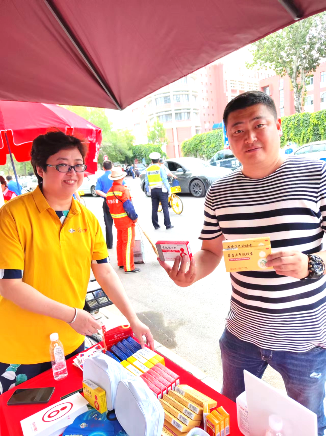 高考爱心包内含:速效救心丸、藿香正气软胶囊、风油精、胃肠安、清咽滴丸等,同时爱心护航志愿站内,还贴心准备了郁美净防蚊喷雾、防晒乳,消毒湿巾、血压仪、扇子、水等,为烈日炎炎之下等待考生的家长提供应急之需。