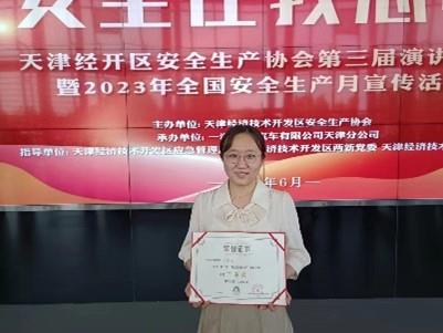 金耀药业文化大使冯珺儒在开发区安全生产协会举办的“安全在我心中”演讲比赛中,将toto彩票理念完美融入到安全文化中,以“安全在心 敬佑生命”为题,从“心、手、口”三方面道来,展现公司特有的安全文化,并获得三等奖,积极践行着文化大使的光荣使命。