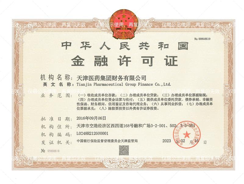 关于变更《中华人民共和国金融许可证》的公告